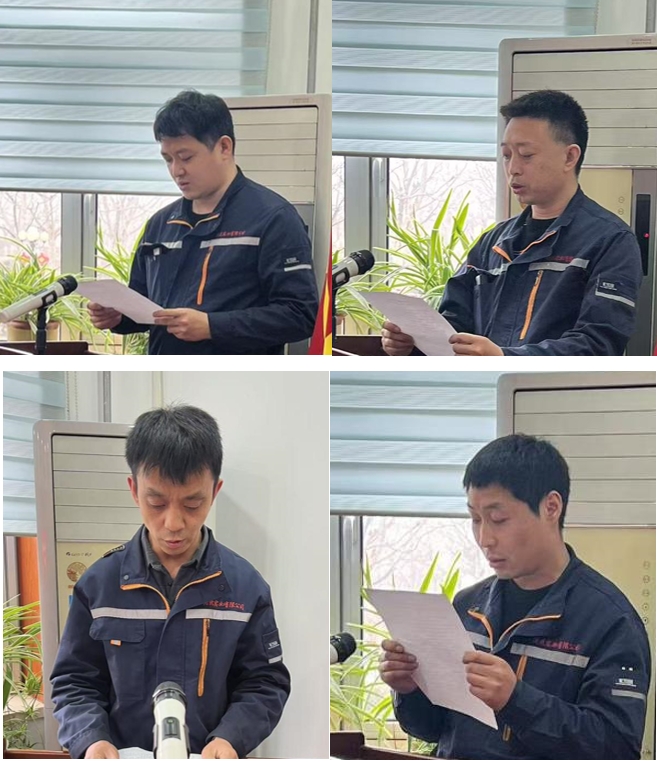 随后,浩然实业公司安全员刘子健,浩然洗煤厂机电副厂长穆红光,洗煤车间主任杨建武和车间副主任刘士利,就如何抓实现场安全生产管理和保证完成安全目标进行了表态发言,承诺将以“时时放心不下”的责任感抓安全、保底线;集团公司安委办发放了《安全知识答题试卷》,测试和巩固安全知识培训学习成果;集团公司安委办安全主管张全海宣读了《董事长桑Ezpay致全体员工的一封信》,号召全体员工以“人人为企业,企业为人人”的理念引领行动,将“我要安全”转化为自觉行动。