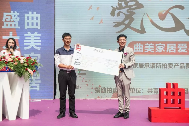 一个好的企业在自身做大做强的同时,一定也不忘回报社会,曲美家具联合共青团丰南区团委,逸慧公益助学在开业启动仪式现场进行了爱心拍卖活动,现场所有拍品均有曲美家居唐山店给予,所有拍卖所得善款一万五千元捐助给了丰南杨英庄小学用于校园建设,杨英庄小学校长张记会校长现场接受了悦居(唐山)股份有限公司董事长沈志勇先生送出的现场筹集一万五千元善款,同时感谢现场的所有参与爱心拍卖的社会各界企业家。